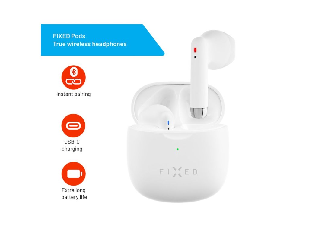 Bezdrátová TWS sluchátka FIXED Pods, bílá