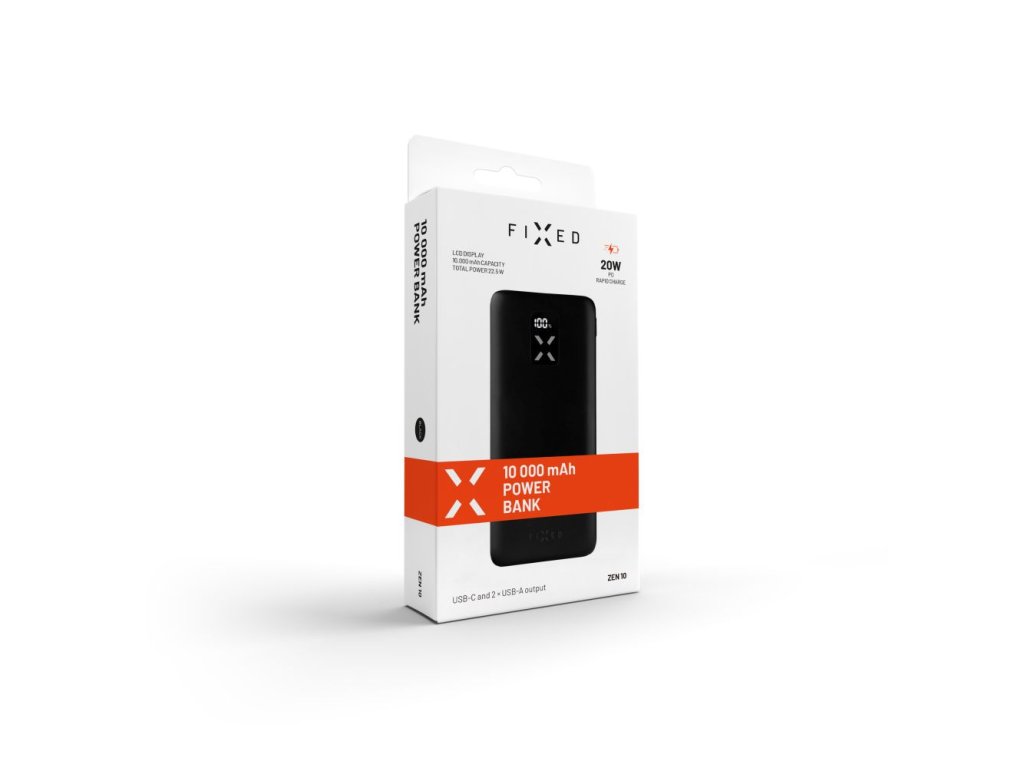 Kompaktní a rychlá powerbanka FIXED Zen 10 vám poslouží jako záložní zdroj energie pro váš mobilní telefon, tablet, sluchátka a další elektroniku. Pro nabíjení je powerbanka vybavena jedním USB-C a dvojicí USB-A portů, dokáže tak dobíjet až tři zařízení současně. Při zapojení USB-C portu powerbanka spustí rychlé nabíjení PD Rapid Charge s výkonem plných 20W. S kapacitou plných 10 000 mAh dobijete několikrát i moderní smartphony. O přesném stavu zbývající energie v powerbance vás informuje LCD displej na těle baterie. I přes svou velkou kapacitou překvapí powerbanka kompaktními rozměry, lehce se vejde do kapsy i do batohu. S powerbankou FIXED Zen 10 se zbavíte věčných starostí o stav baterie ve vašich zařízeních, ať už jste kdekoliv.